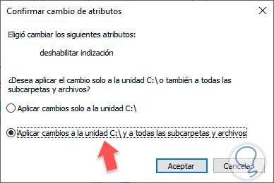 Pulsamos en “Aplicar” y después en la nueva ventana selecciona “Aplicar cambios a la unidad c , subcarpetas y archivos”.