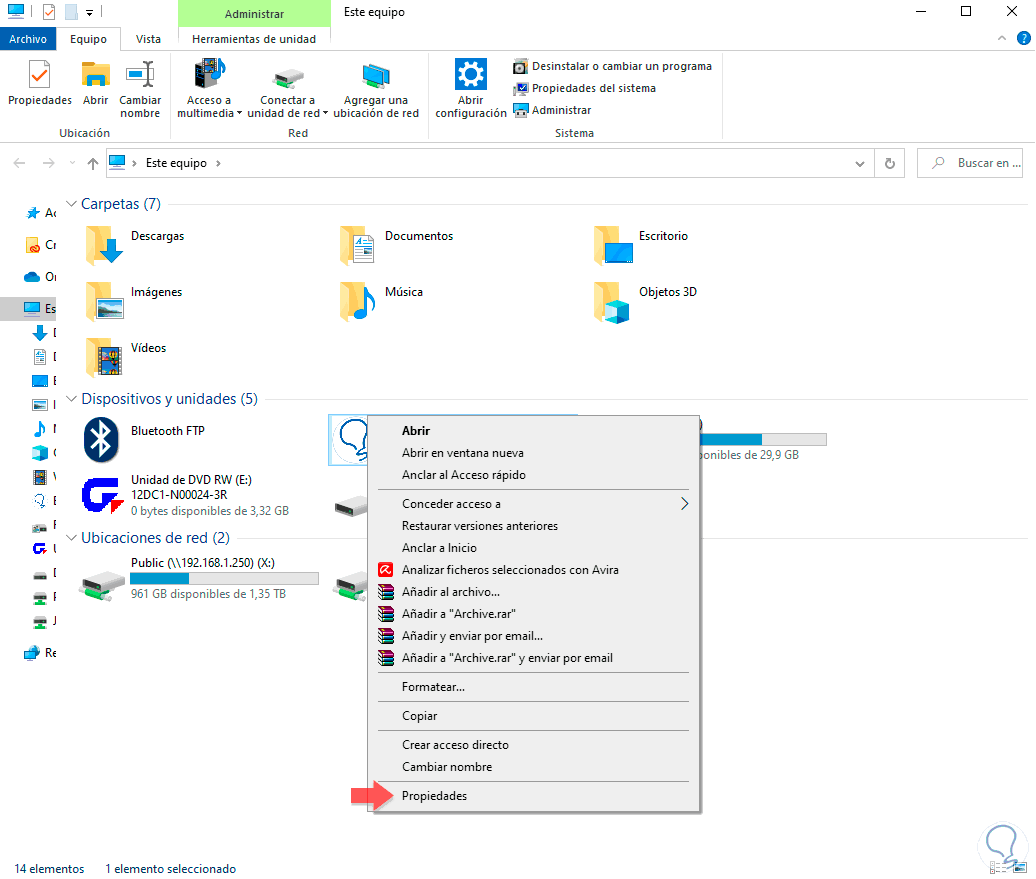 Nos dirigimos al apartado de “Este equipo” y hacemos clic derecho sobre nuestro disco C. Aquí pulsaremos en “Propiedades”.