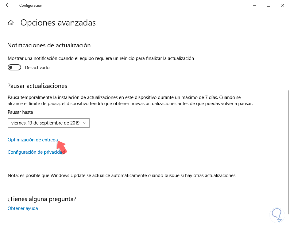 Ahora desplázate con scroll hacia abajo y pulsa en la opción de “Optimización de entrega”.