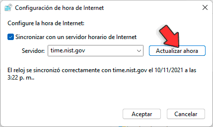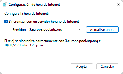 3.europe.pool.ntp.orgDamos clic en "Actualizar ahora" para aplicar los cambios: