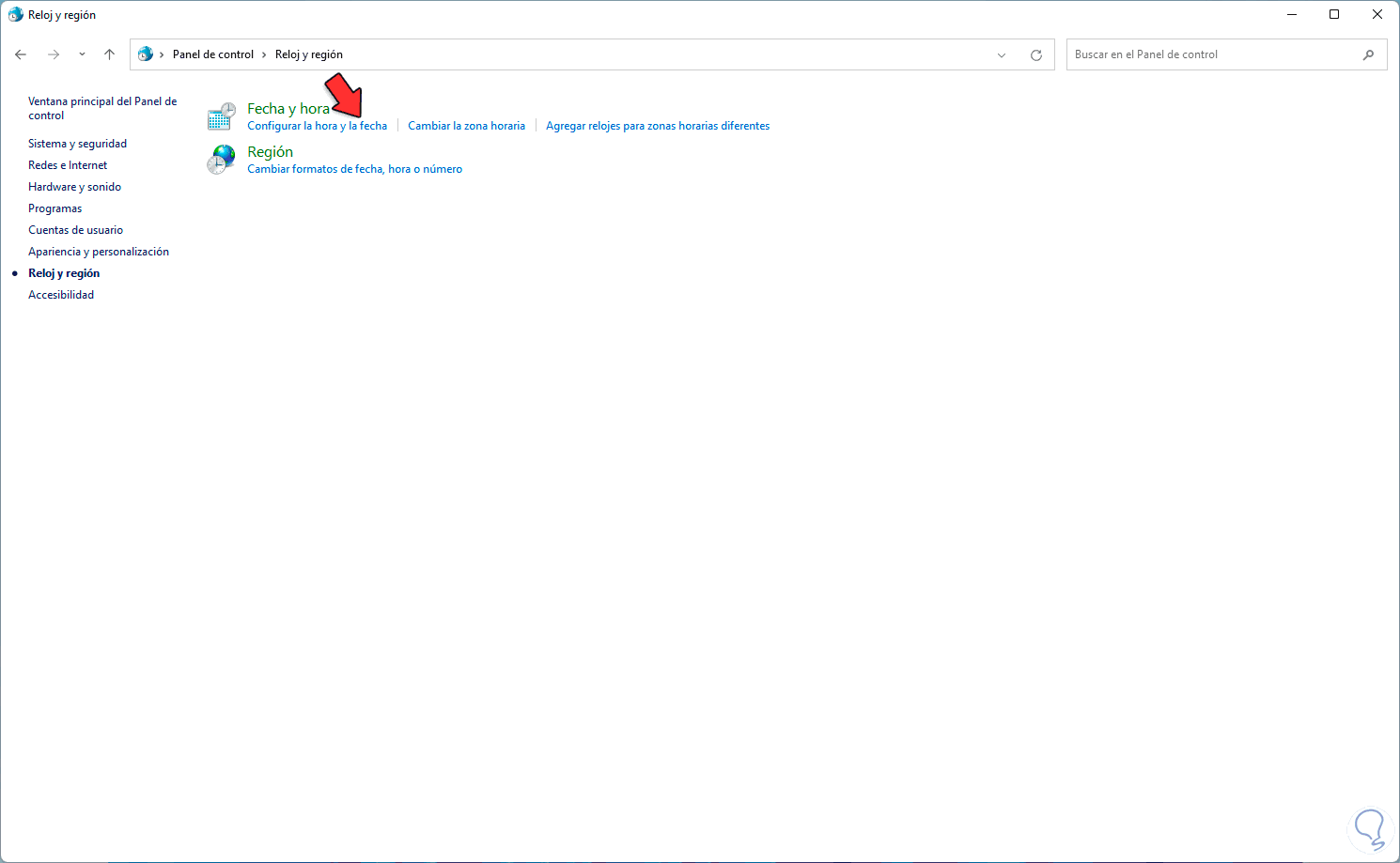 Allí damos clic en "Fecha y hora"
