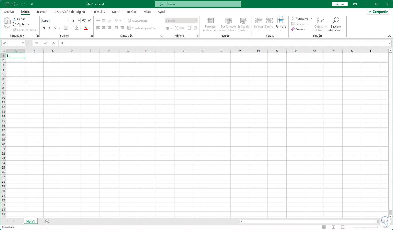 Abrimos Excel 2021 y en alguna celda ingresamos el número base: