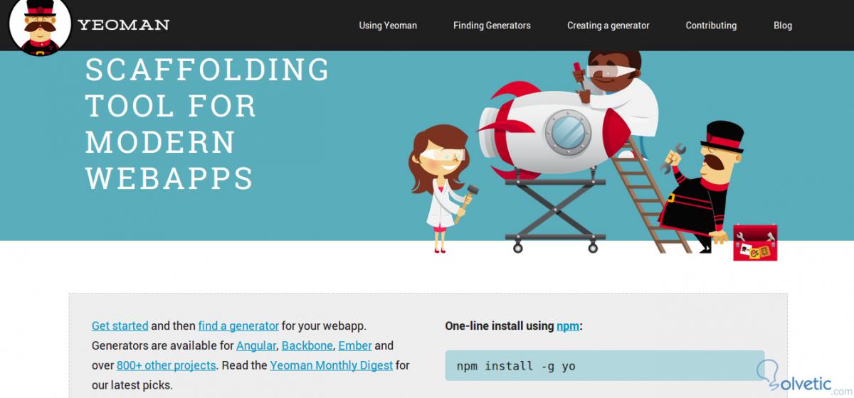 Esto nos ayuda a evitar errores en la configuración inicial de nuestra aplicación. Podemos combinar esta herramienta con otras como Grunt, bower y npm para construir las dependencias de los paquetes que requerimos.
