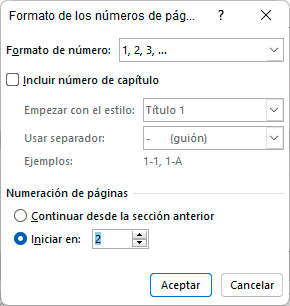 Es posible seleccionar un estilo de número diferente o definir desde que número se inicia, aplicamos los cambios en caso de ser necesario.