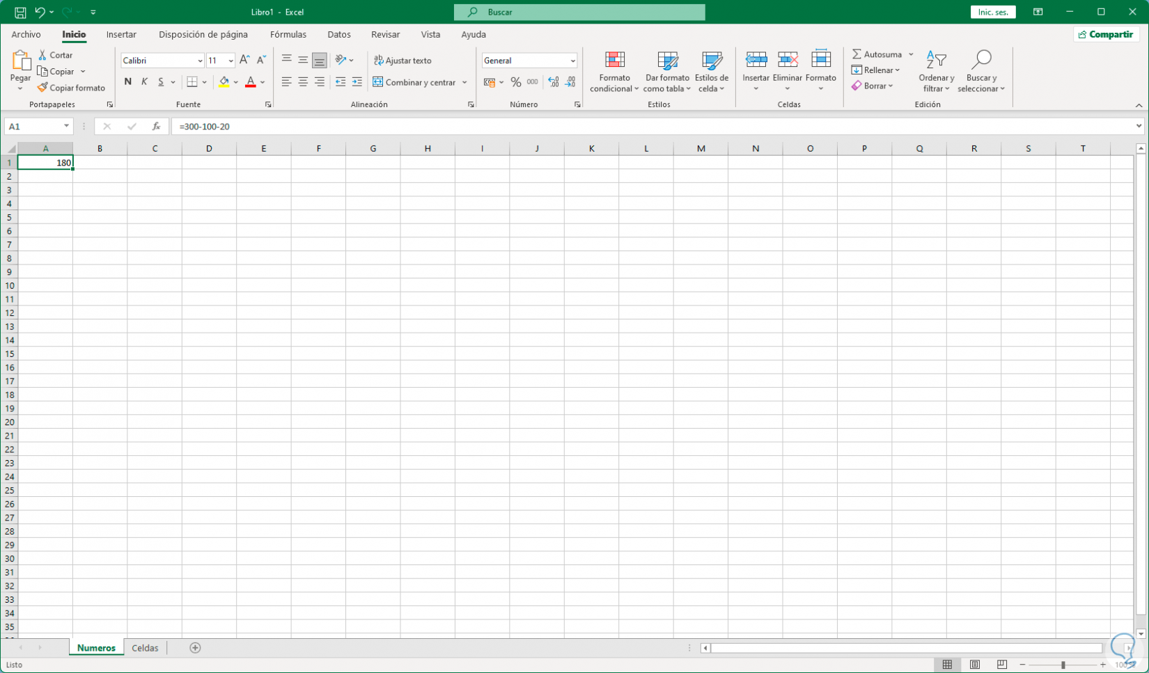 Inicialmente veremos como restar números en la hoja de cálculo, abrimos Excel 2021 y en una celda ingresamos la sintaxis: