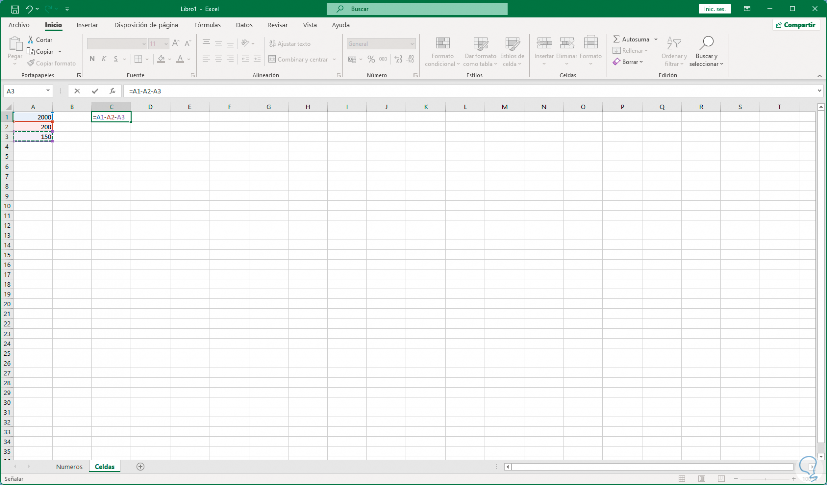 Ahora, si el objetivo es restar celdas directamente, es igual de simple, vemos las celdas con los números asignados:
