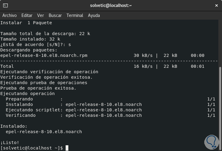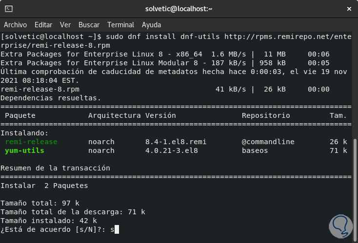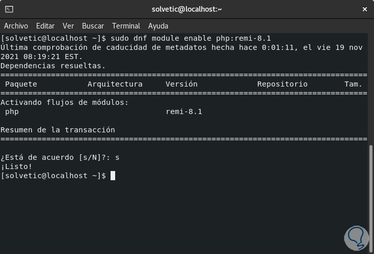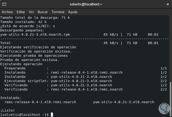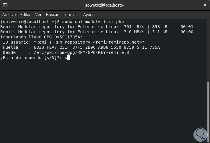 Una vez ejecutado este comando, habilitamos el repositorio Remi: