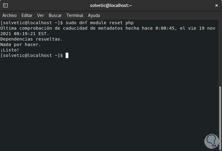 sudo dnf module reset php