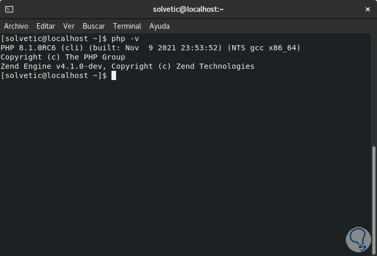 Comprobamos la versión de PHP con el comando: