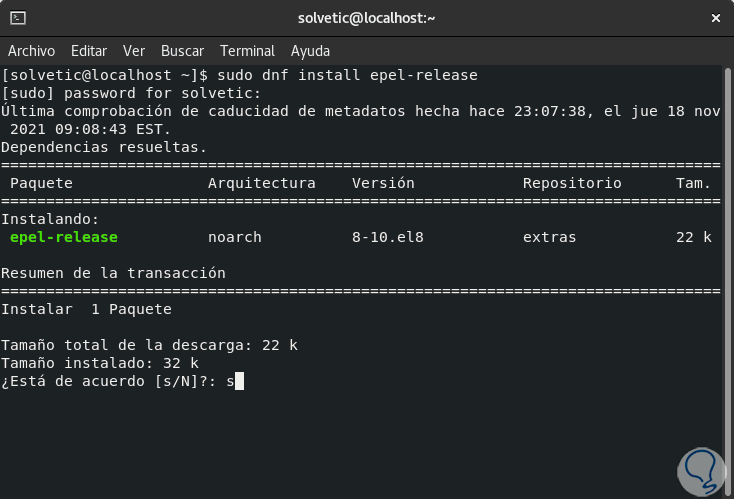 Allí instalamos los repositorios EPEL con el comando: