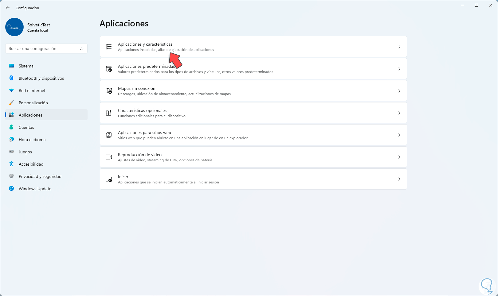 Luego vamos a “Aplicaciones y características” :
