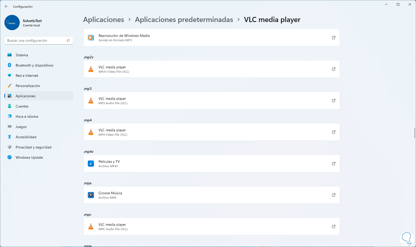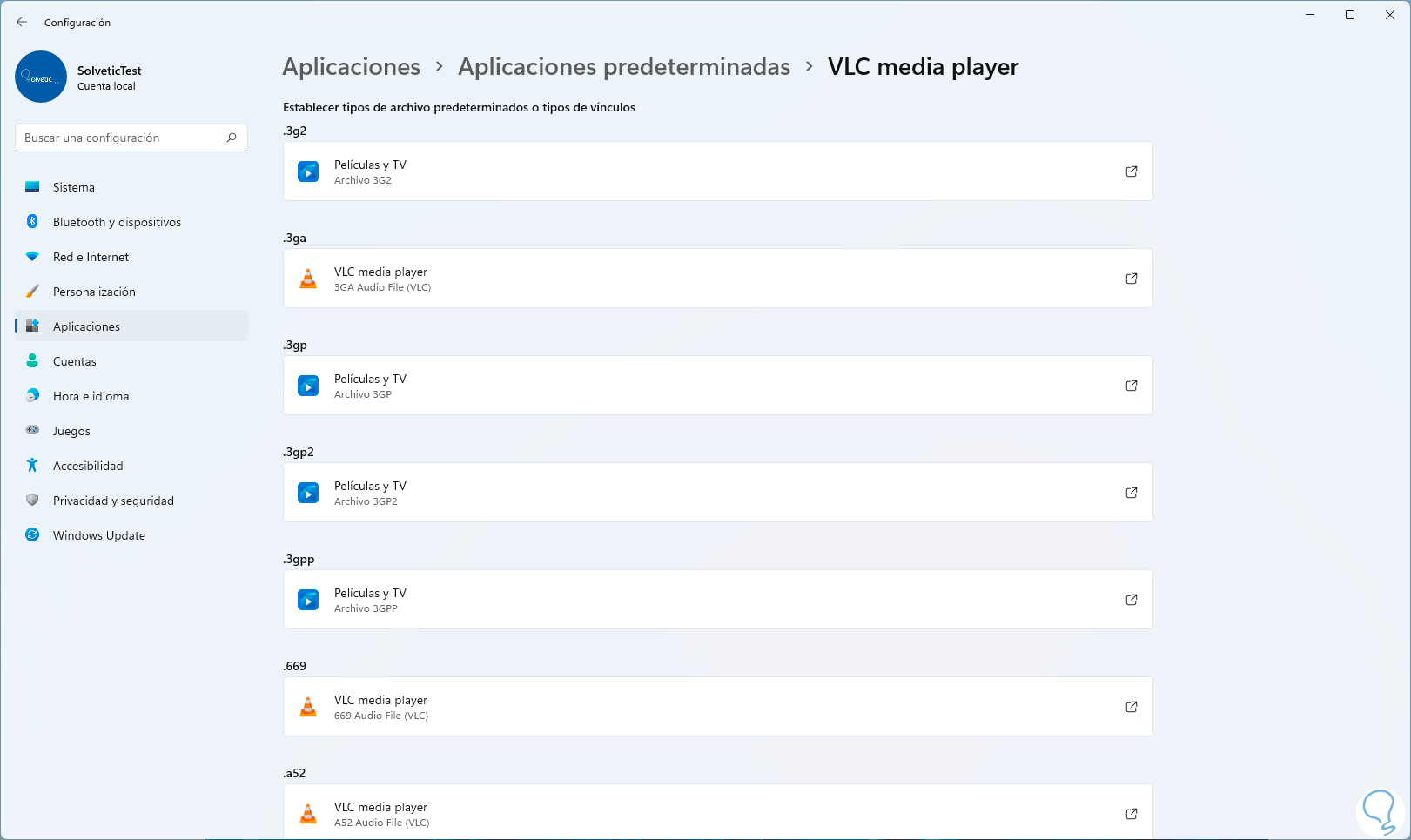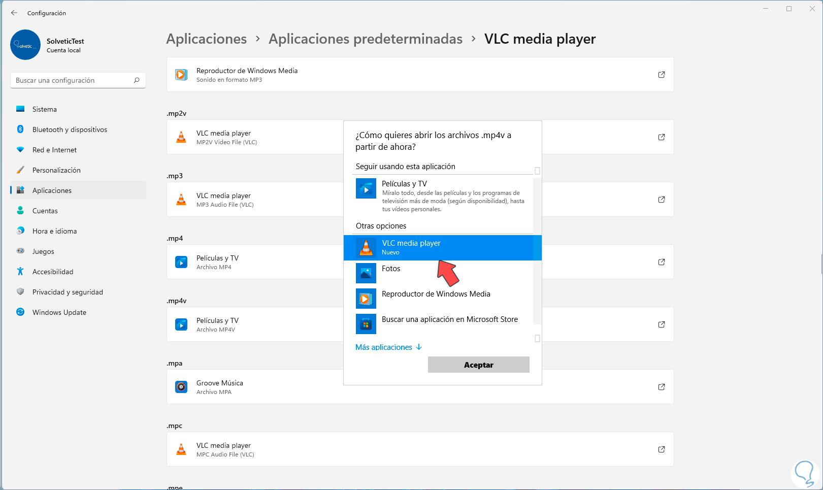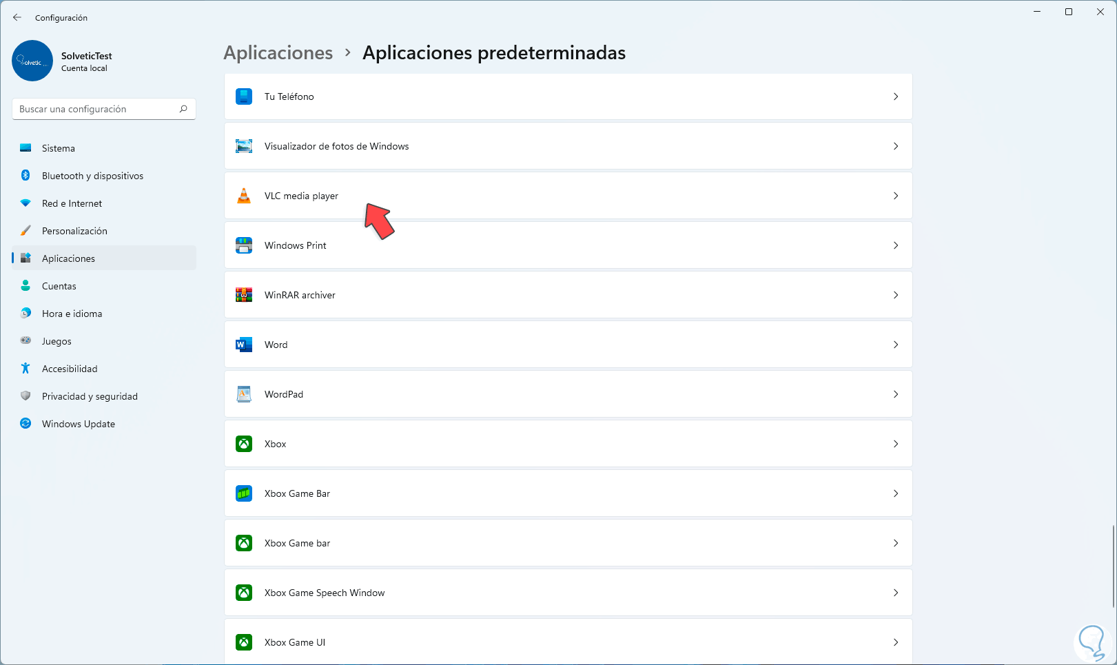 2. Poner VLC como Predeterminado Windows 11 desde Configuración