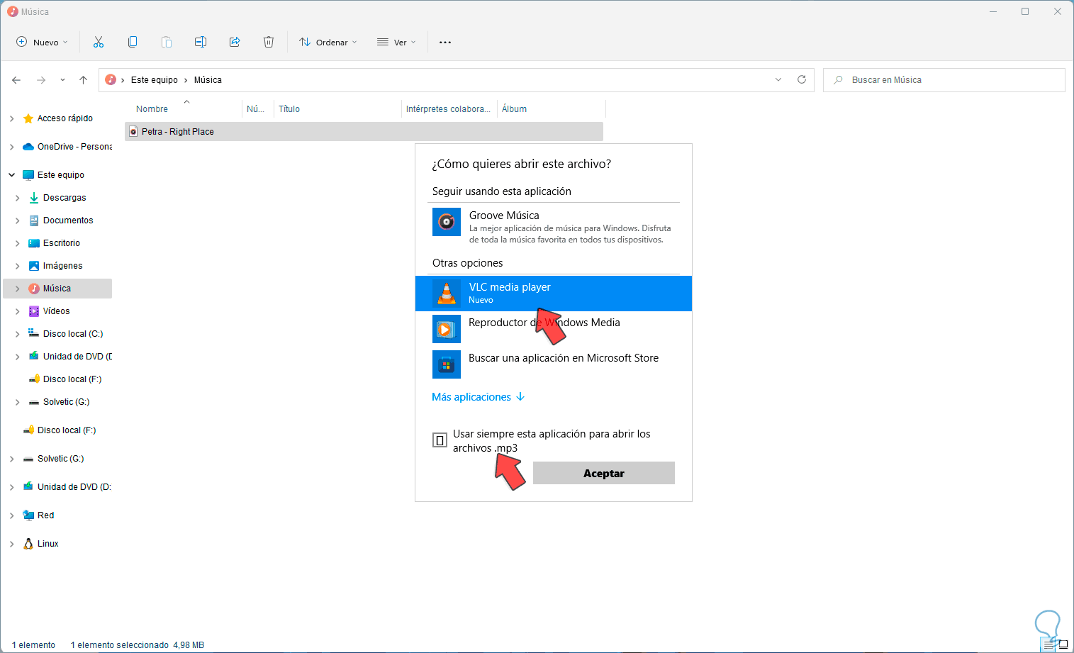 1. Poner VLC como Predeterminado Windows 11 desde Explorador
