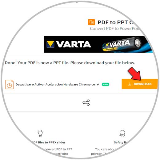 Damos clic en el botón "Download" para descargar el archivo convertido: