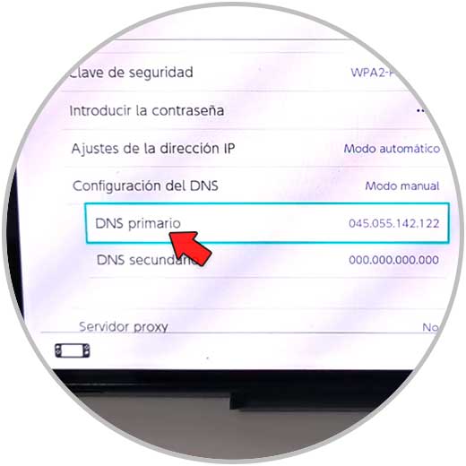 Una vez aquí tienes que pulsar en "DNS Primario". A continuación introduce el siguiente código y guarda la configuración.