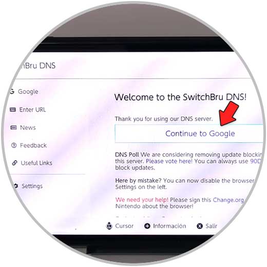 Ahora verás que aparece una página en la consola. Tienes que pulsar sobre "Google" para entrar en el navegador.