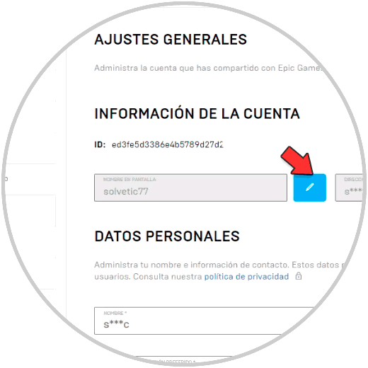 Verás que aparecen los ajuste generales. Para continuar tendrás que pulsar sobre el icono de edición al lado del nombre.