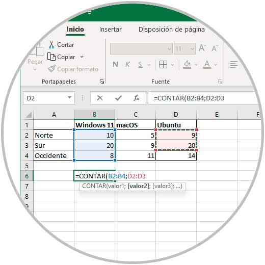 - En caso de que un argumento sea una matriz o una referencia, solo se considerarán los números que estén ingresados en la matriz o referencia, no serán contados celdas vacías, valores lógicos, texto o valores de error de la matriz o de la referencia