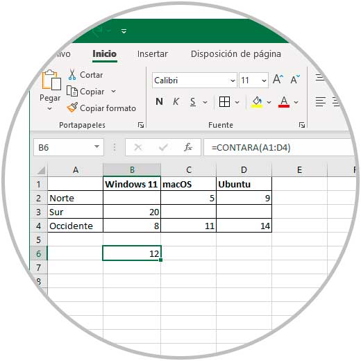 Esta es una función que permite contar la cantidad de celdas que no están vacías en un rango que definamos, por lo tanto se excluyen las celdas vacías, para contar solo las celdas que contienen algo, ejecutamos lo siguiente: