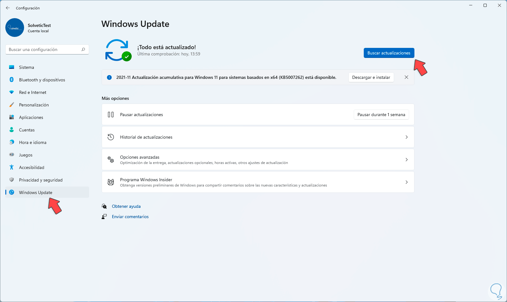 Cómo buscar actualizaciones en Windows 11