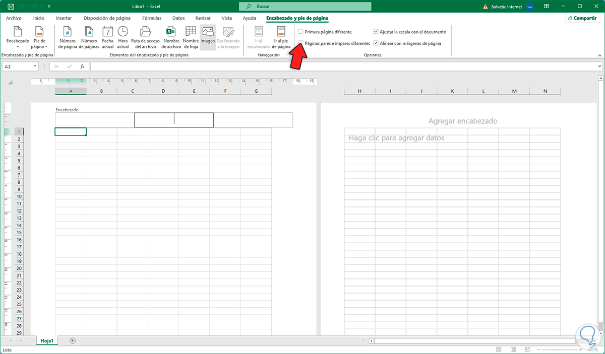 Damos doble clic sobre el encabezado de la hoja y serán abiertas una serie de opciones:
