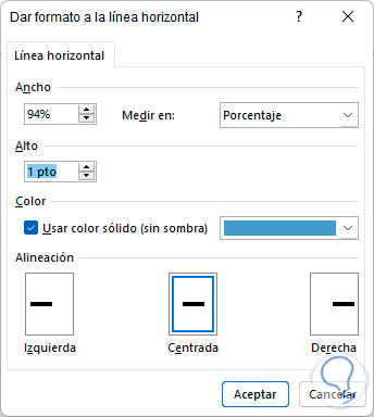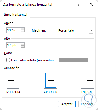 Es posible cambiar su color, estilo, porcentaje de medida, ancho, etc: