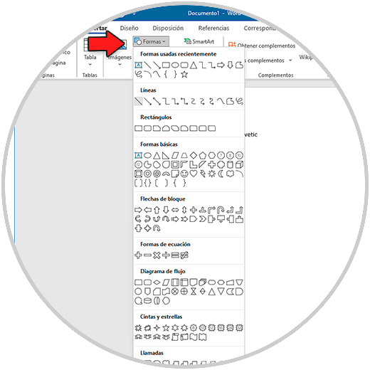 Otra opción a usar es ir al menú "Insertar - Formas":