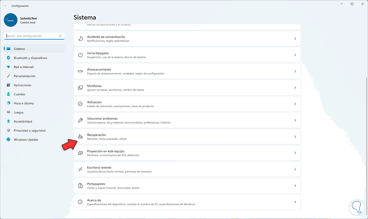 Iremos a “Sistema – Recuperación”: