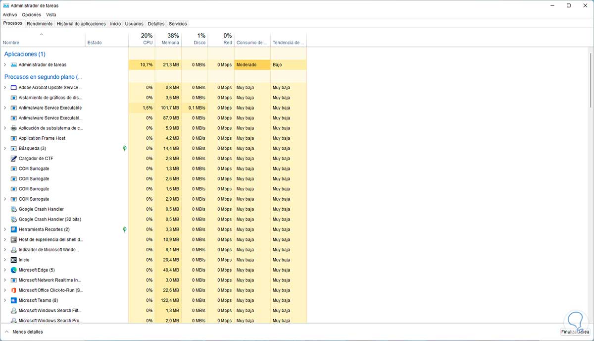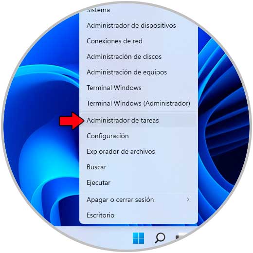 En este caso debemos cerrar el programa o aplicación, abrimos el Administrador de tareas desde Inicio: