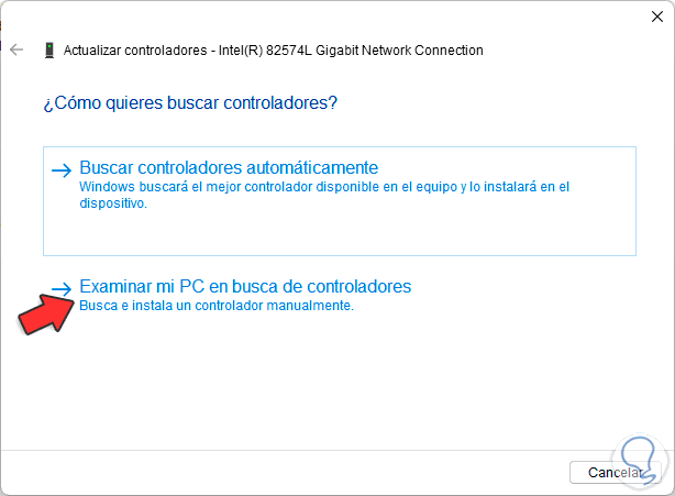 Veremos lo siguiente. Seleccionamos la opción automática para que sea Windows Update quien ejecute el proceso o bien la opción “Examinar mi PC en busca de controladores” si hemos descargado los controladores actualizados.
