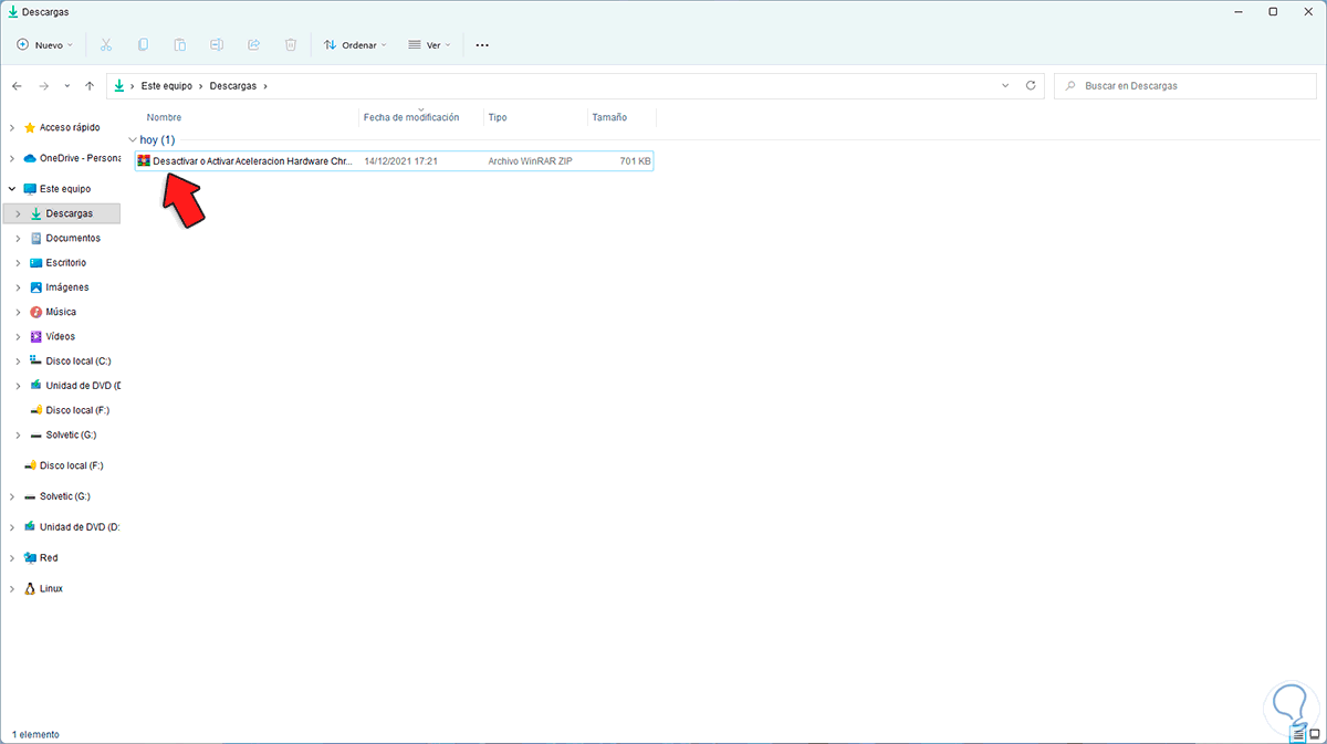 Damos clic en "Descargar" y este estará en formato ZIP: