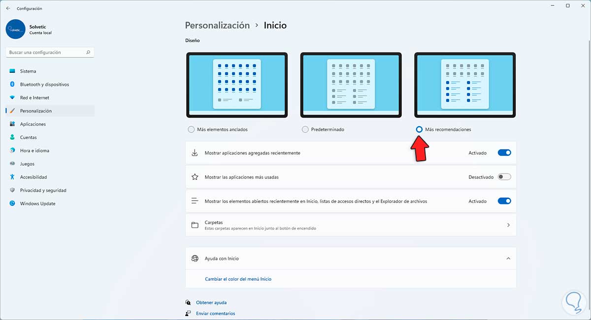 Con estos pocos pasos es posible hacer que Windows 11 nos muestre mas aplicaciones o recomendaciones en el menú Inicio.