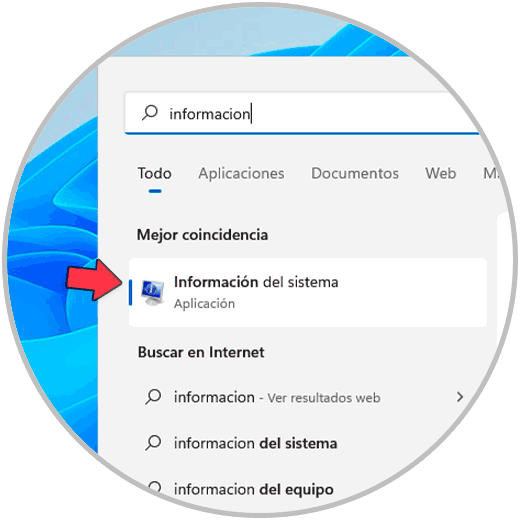 Con esta opción accedemos a un amplio conjunto de detalles del PC entre ellos lo relacionado a la placa madre, en el buscador de Inicio ingresamos "información":