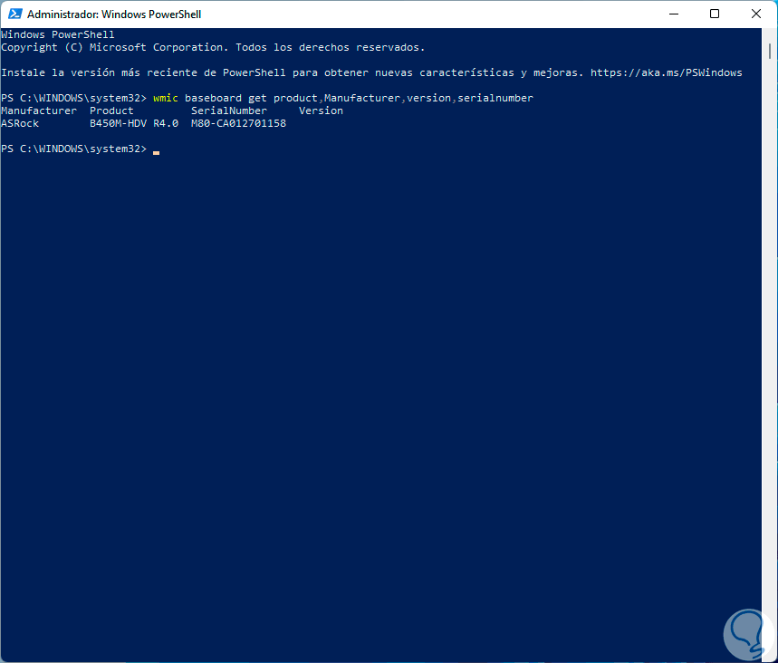 2. Cómo Saber que Placa Madre tengo en mi PC desde PowerShell