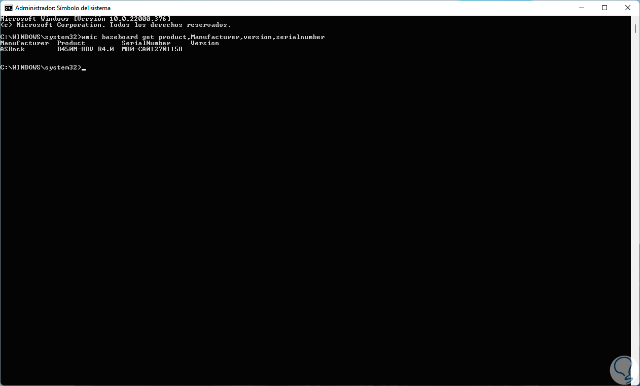 wmic baseboard get product, Manufacturer, version, serialnumber