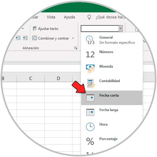 Lo siguiente que debes hacer es desplegar el menú de "". Ahora debes poner "Fecha corta"