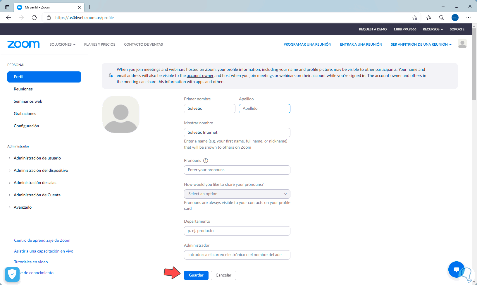Aplicamos los cambios dando clic en Guardar: