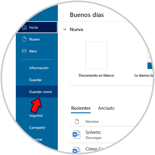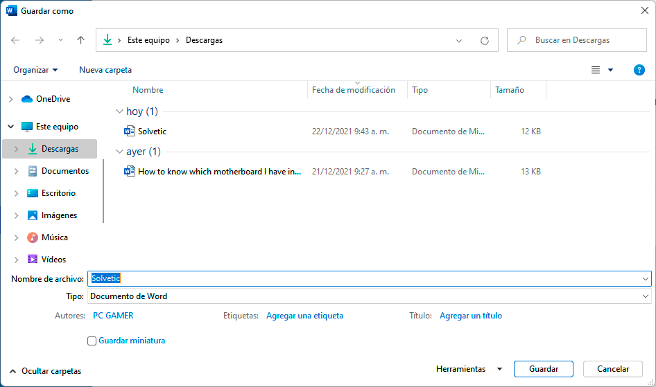 Guardamos el documento y veremos lo siguiente. Damos clic en Guardar para definir donde se guarda el documento: