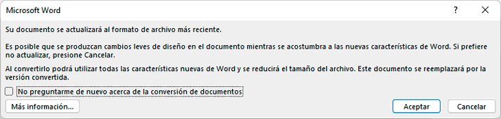 En este caso podemos realizar la conversión al formato .docx de las versiones más recientes de Word para disfrutar de un conjunto más amplio de funciones.
