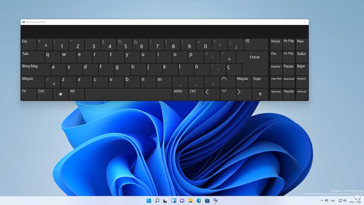 Damos clic en el icono de teclado y se abrirá dicho teclado en pantalla: