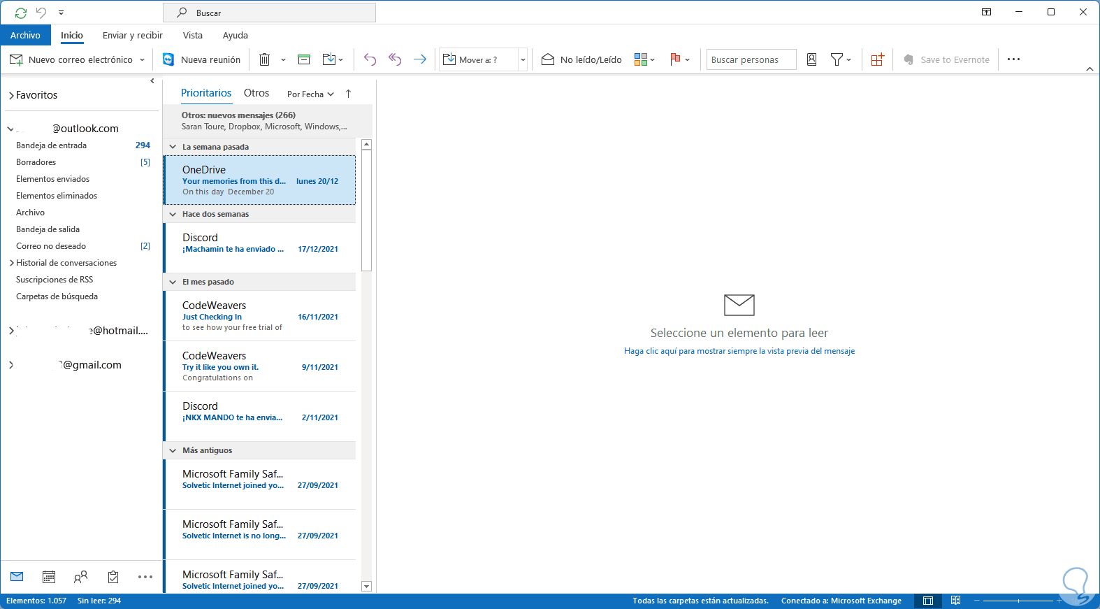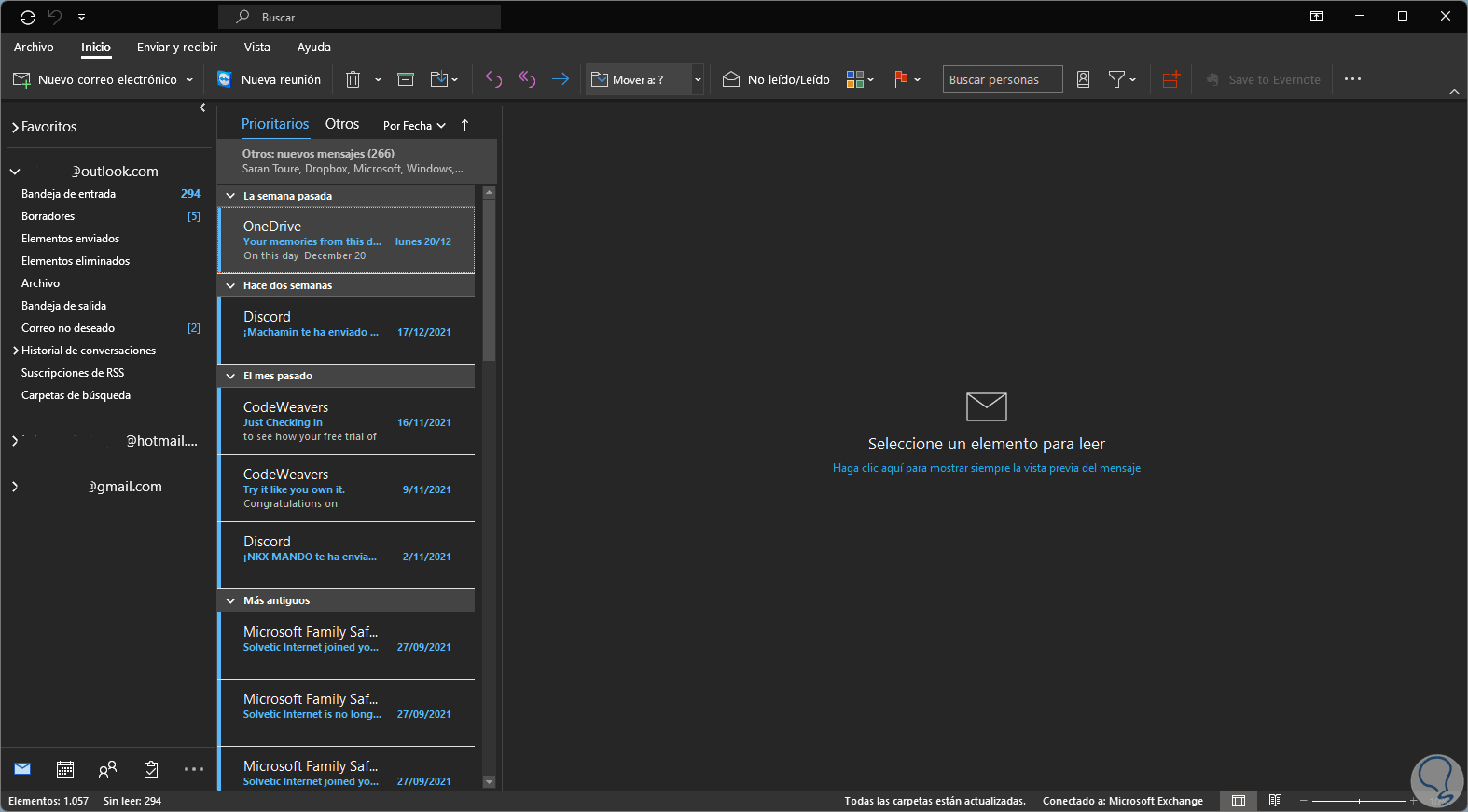 Aplicamos los cambios y Outlook estará en el modo oscuro: