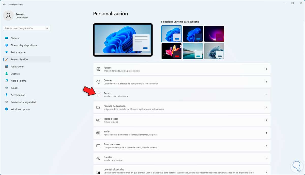 Ahora vamos a “Personalización – Temas”:
