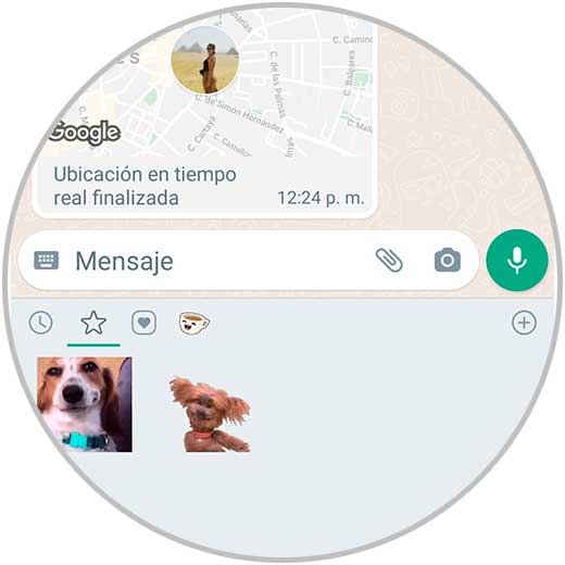 Lo siguiente será pulsar sore la Estrellita de la parte superior para ver los sticker guardados en favoritos.
