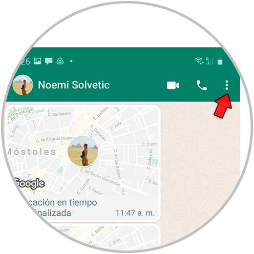 Lo primero que debes hacer es entrar en el chat que quieres exportar y pulsar sobre los tres puntos superiores.