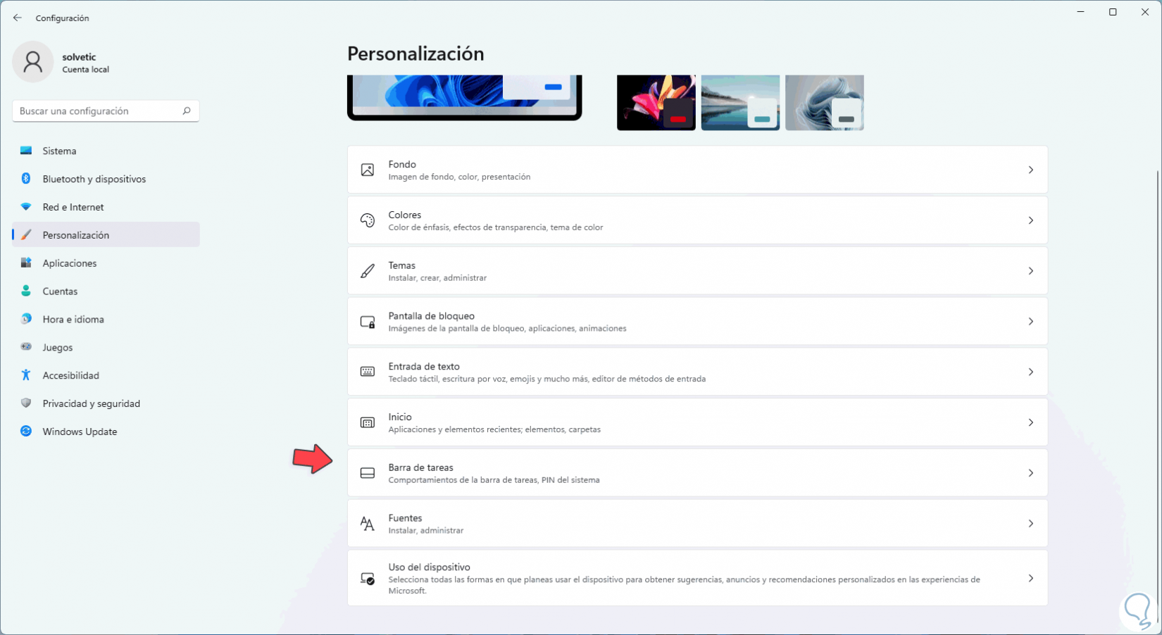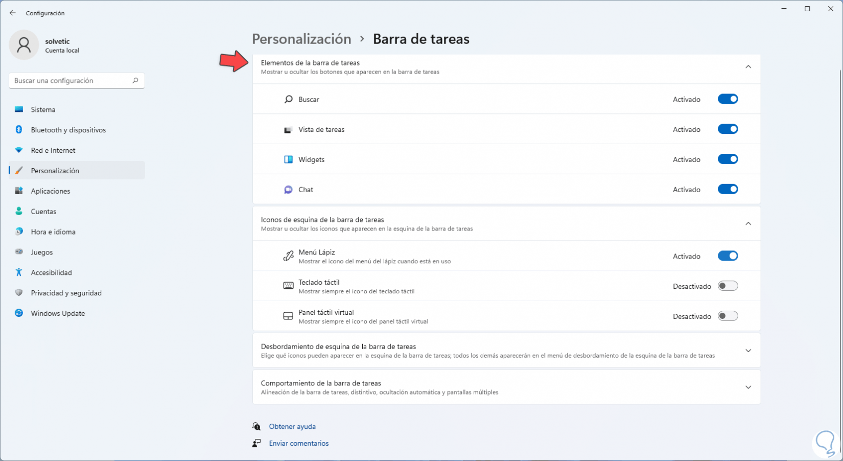 2. Activar iconos Barra de Tareas Windows 11 desde Configuración