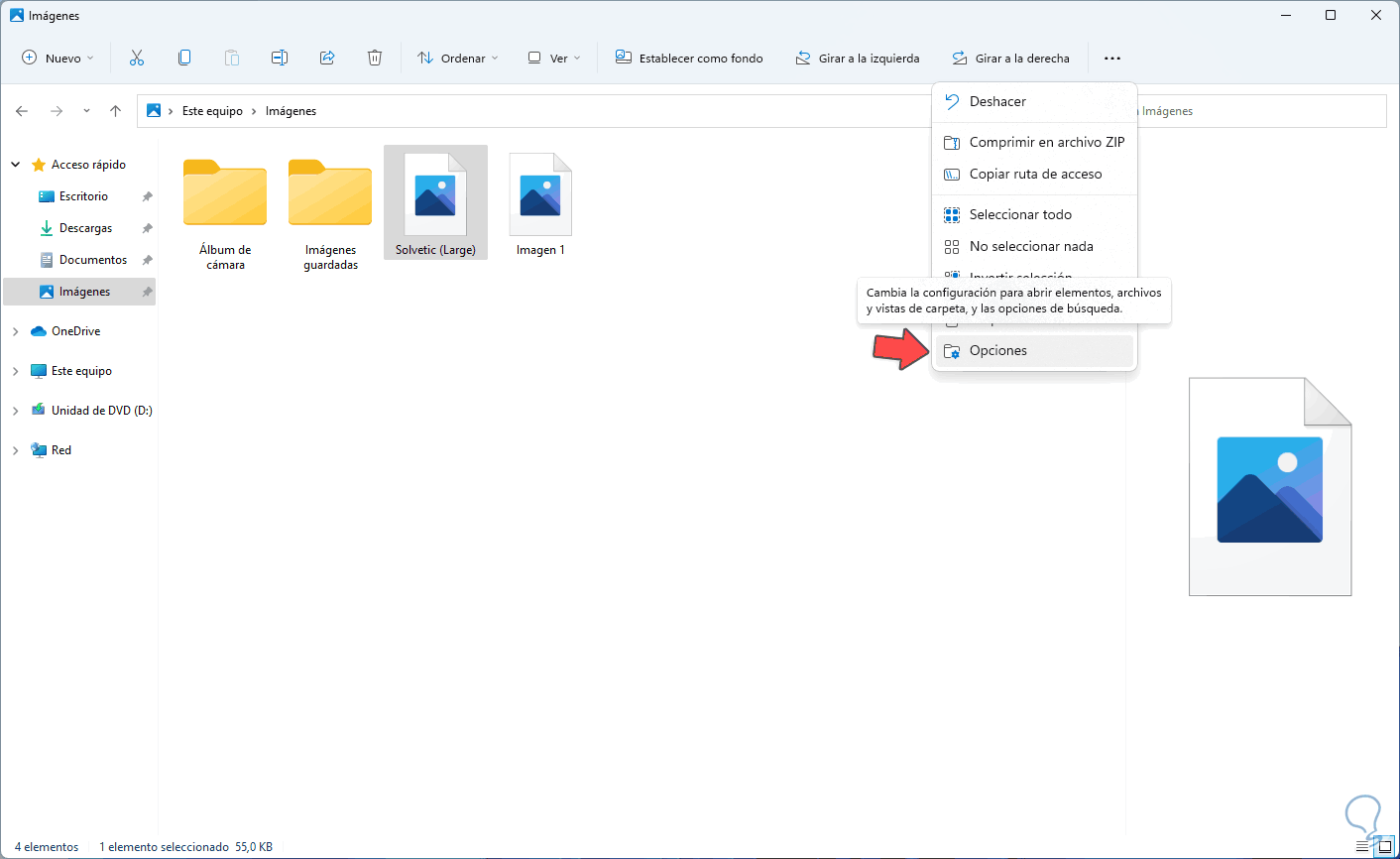 Este simple paso nos permite dar una solución a este error y así ver la vista previa de cada imagen cuando nos encontremos con el error de que Windows 11 no muestra vista previa de imágenes.