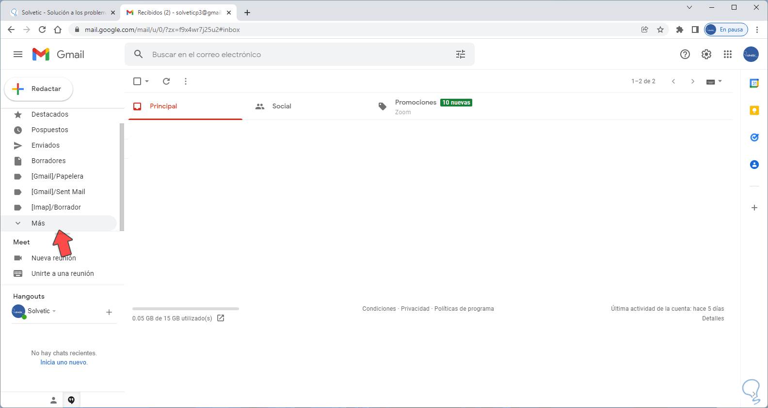 Abrimos Gmail, en el menú lateral damos clic en "Más”: