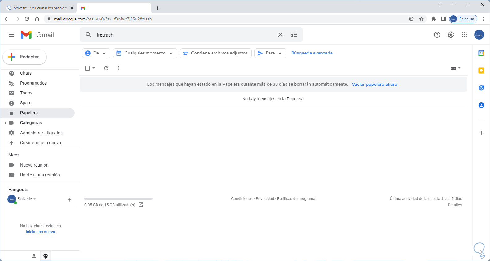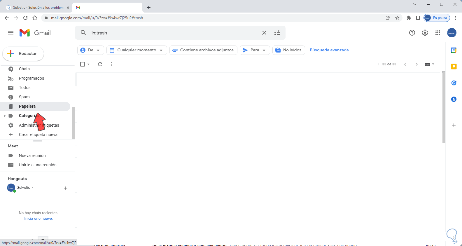 Esta es la forma para borrar los correos de la papelera de Gmail y así poder encontrar correos eliminados Gmail fácilmente y recuperarlos.