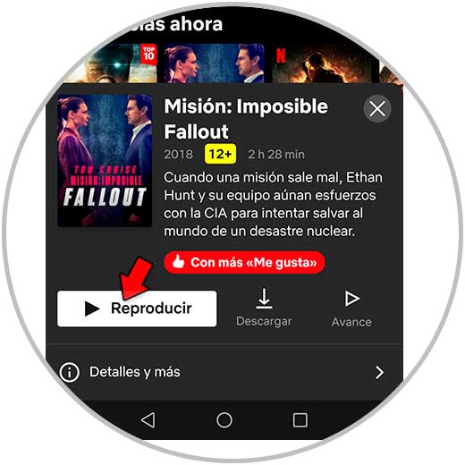 Una vez comprobado esto, tienes que entrar en tu cuenta de Netflix desde la app y seleccionar el contenido que quieres ver a pantalla completa.