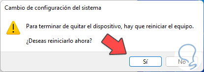 Veremos este nuevo mensaje: Damos clic en "Sí" para reiniciar Windows 11: